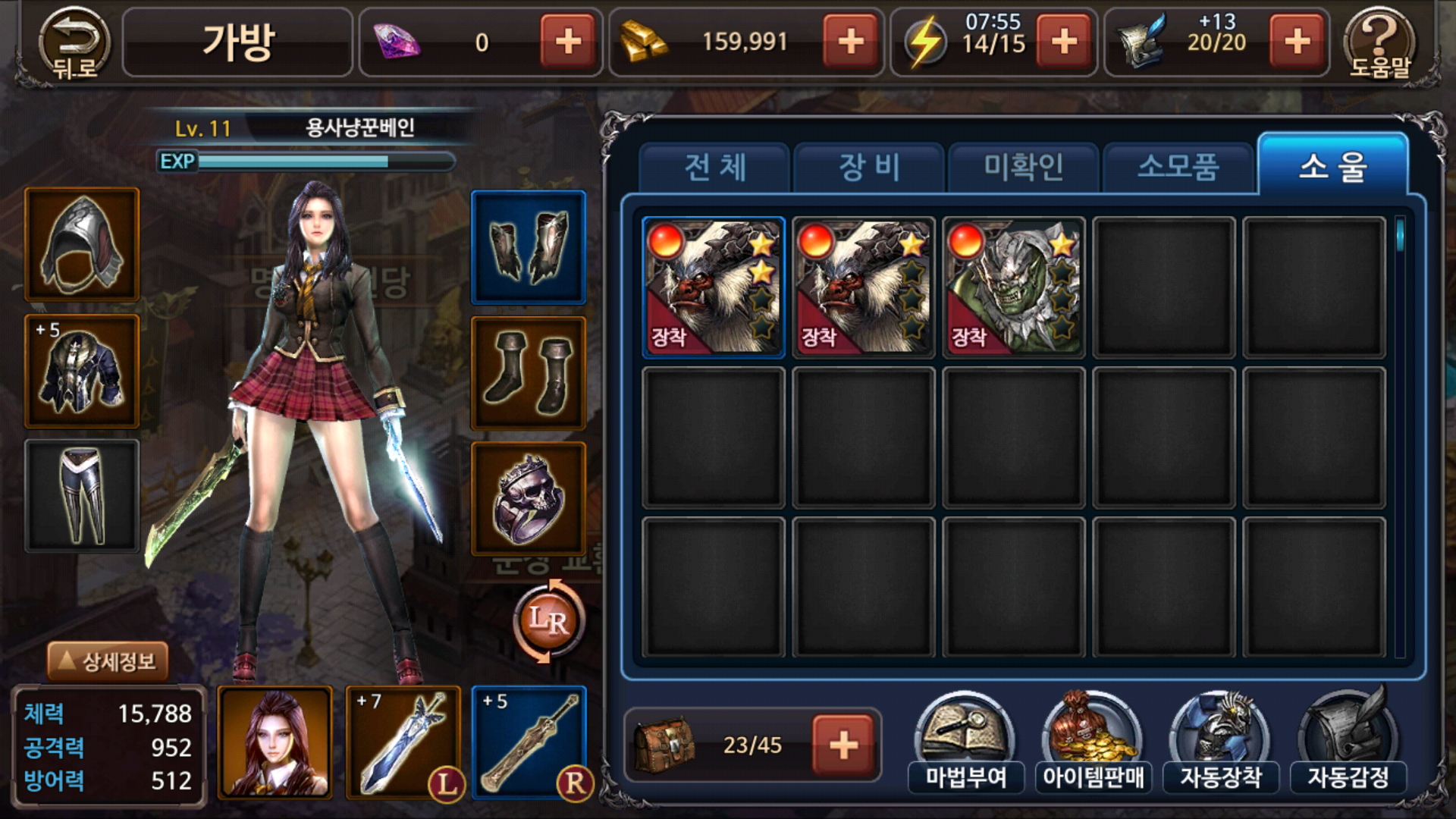 이게 스토리모드가 지금 제가 챕터 1의 화염의길 23스테이 중인데요 진짜 쉽지가 않더군요 ㄷㄷㄷㄷ 근데 퀘스트나 업적이나 던전 보상으로 받은 소울을 스킬에다 장착해봤습니다. 소울은 스킬 공격력 강화 같은 옵션 붙어있는데 여튼 이거덕에 스킬딜이 강해지니까 사냥이 조금 수월해졌어요 ㅎㅎ 다른게임들 자동사냥돌리면 그냥 쭉쭉깨는거에 비해 러스티블러드는 심혈을 기울여서 깨는 맛이 있네요 ㅎㅎ 지금 교복스킨까지 질렀습니다 ㅋㅋㅋㅋ