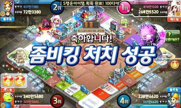 좀비킹 처치 성공!!!모마에 평화가 깃들었네요 ㅋㅋㅋㅋㅋ얼마전에 나온 좀비맵인데, 기존 맵이랑 룰이 비슷한 듯 하지만좀비킹을 처치하면 모든 유저 승리,사람들이 모두 감염되면 전부 패배 하는 룰이 추가됐죠. 좀비킹은 이렇게 역주행을 하면서 움직이는데주사위 굴려서 지나갈 땐 괜챃지만좀기가 움직이면서 지나가게 되면 감염이 됩니다. 좀비킹 잡는 방법은 인류본부에 들어가면 되는데좀비맵 나오고 뭔가 한마음 한뜻이 된 듯 하네요