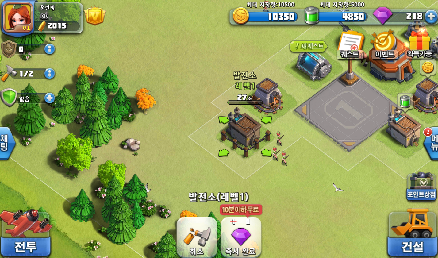 원래 클래시오브클랜 덕후일정도로 전략sng게임을 좋아하는데이번에 다른 sng게임도 접해볼겸해서 리벤져스 사전테스트를 해보게 되었습니다여기에 생각보다 괜찮은 요소들이 많았습니다먼저 건물 즉시완료 시스템!이건 10분이내로 완성되는 건물이나 업그레이드를 공짜로 바로 완료시킬 수 있는 기능이죠단순한 이벤트성이 아니라 하나의 컨텐츠로서 계속 할 수 있다는 겁니다..ㄷㄷㄷㄷ신규유저를 위한 혜택도 보이는 바와 같이 풍성했습니다유닛을 생산하는 훈련소는 어떤유닛을 얼마나 생산하느냐에따라 소모되는 시간도 제각각인데요리벤져스를 새로 시작한 새내기유저는 아무 조건없이 누구나 무료로 10번 즉시완료를 할 수 있었습니다하지만 다이아나 에너지와