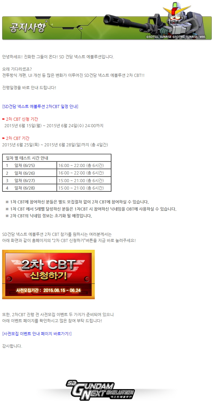 본격적으로 SD건담 넥스트 에볼루션 CBT 2차가 시작되네요16시부터 시작한다고 문자까지 날아오는거 보니 1차와는다르게 준비도 좀 잘해놨을꺼 같은 기분?? 얼른 16시가되서플레이 했으면 좋겠내요 ㅎ