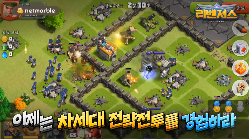 어제 사전테스트가 끝났는데요. 해보고 느낀점을 간단하게 서볼게요.맨먼저 느낀건 신규유저들을 잡기위해 선물이벤트가 많다는걸 느낌 접속한 시간만큼 리벤져스에 필요한 재료를 주는 이벤트는 돈이 아니드라도 기븐이 좋더군요. 대기만 시켜놓으면 받을수 있으니.한가지 아쉬운점은 자동으로 받을수 있게 했다면 더좋았을 거란 느낌이 들더군요.그리고 시대덕 배경이 근미래? 라 그런지 터미네이터 닮은 캐릭도 나오고 고급유닛으로 가면 로봇이 많이 나오더군요. 그리고 클래시오브클랜과 다른점이 확실히 몇개가 보였습니다. 바로 포로시스템과 미니 게엠인데요포로시스템은 친구와 대전을해 이기면 친구를 포로 수용소안에 넣어둘수 있는데요 전투를 할때마다 수