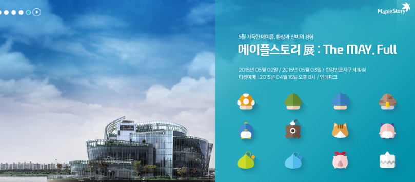 • 예전에 친구들과 재미있게 했던 추억이 있는 메이플스토리 ㅋㅋ이때는 마법사로 슬라임 많은 나무있는데에가서 자리하나잡고 매직클로만 했었던 기억이..그 당시 친구들끼리 서로 슬라임 자리 맡아주고 그랬는데ㅋㅋㅋ현재 메이플을 다시 하고있는데 메이플이 벌써 12주년을 맞이했다고 합니다 세월참 빠르다고 느껴지면서 순간 정말 오래된 게임이구나 라는 생각이..이번에 12주년을 맞이해서 오프라인 행사를 진행한다고 하는데 세빛둥둥섬에서12년동안의 메이플의 기억을 볼수 잇는 전시전 형태로 오프라인 행사를 진행한다고 합니다저도 이번에 친동생이랑 한번 가보려고해서 인터파크에서 티켓 예매하라고 말해둿습니다 ㅋㅋ제가 지금 친동생이랑 메이플