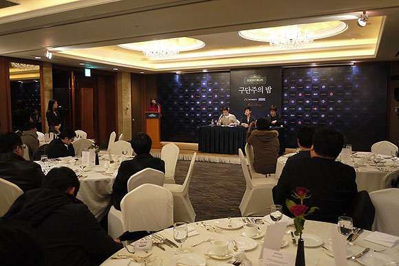 엔트리브소프트는 국내 최초 프로야구단 운영 시뮬레이션 게임 프로야구 매니저에서 유저 간담회 행사인 ‘제2회 구단주의 밤’이 성황리에 종료됐다고 금일 밝혔다. 지난 18일(토) 롯데호텔 에메랄드홀에서 진행된 구단주의 밤에는 70여명의 유저와 관계자들이 참석했다. MBC 스포츠플러스 김민아 아나운서..2012.02.20 18:51