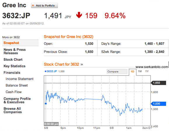 ▲ 9일 기록된 GREE의 주가 변동 사항