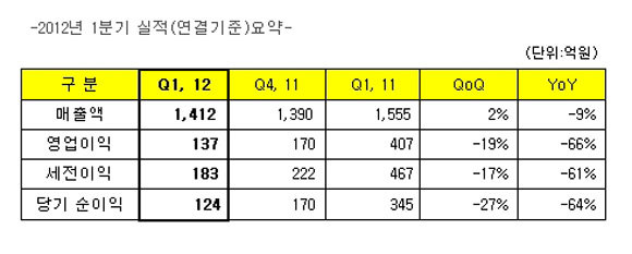 ▲ 엔씨소프트 2012년 1분기 실적 요약 (자료 제공: 엔씨소프트)