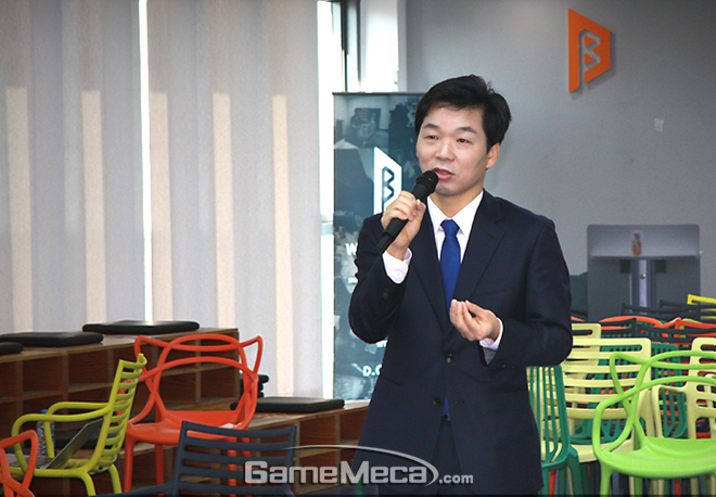 ▲ 더민주 입당 한 달여 만에 게임전문매체 앞에 선 김병관 의장