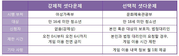 강제적 셧다운제와 선택적 셧다운제는 차이점이 있다