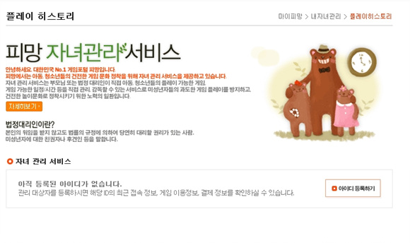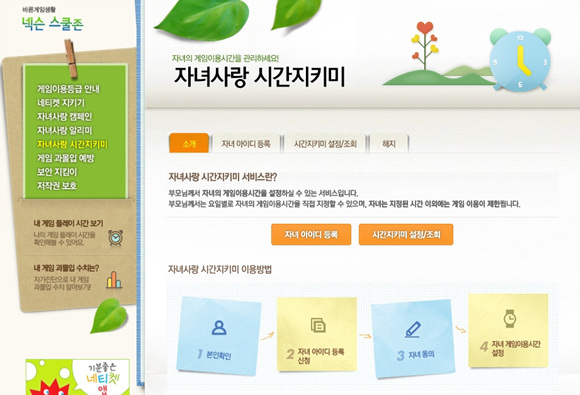 넥슨에서 실시 중인 자녀사랑 시간지키미 서비스