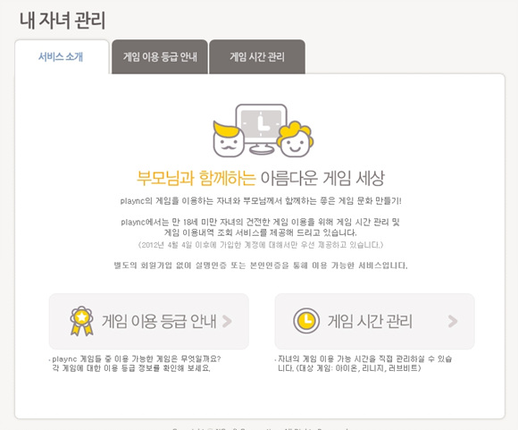 엔씨소프트에서 실시 중인 내 자녀 관리 서비스