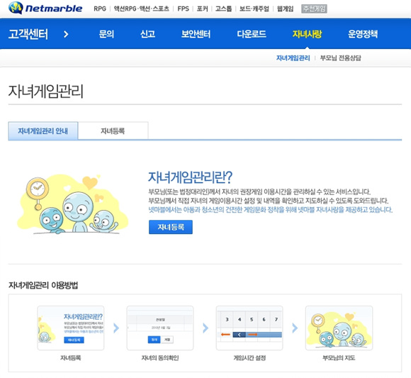CJ E&M 넷마블에서 시행중인 자녀게임관리 서비스