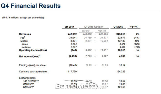 ▲ 넥슨 2015년 4분기 실적 (자료제공: 넥슨)