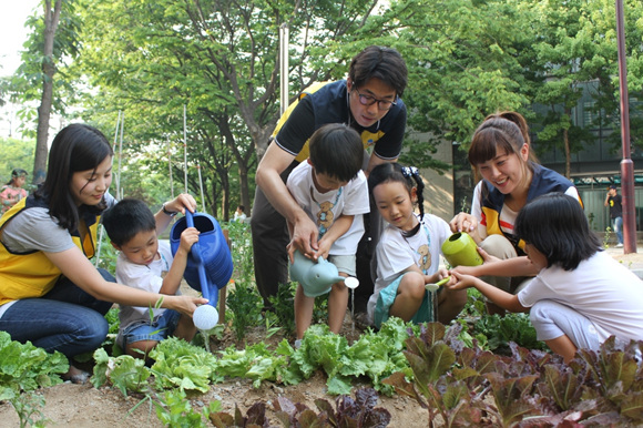▲ 넷마블 임직원들이 어린이들과 에너지 절약을 위한 테마 활동을 펼쳤다 (사진 제공: 넷마블)