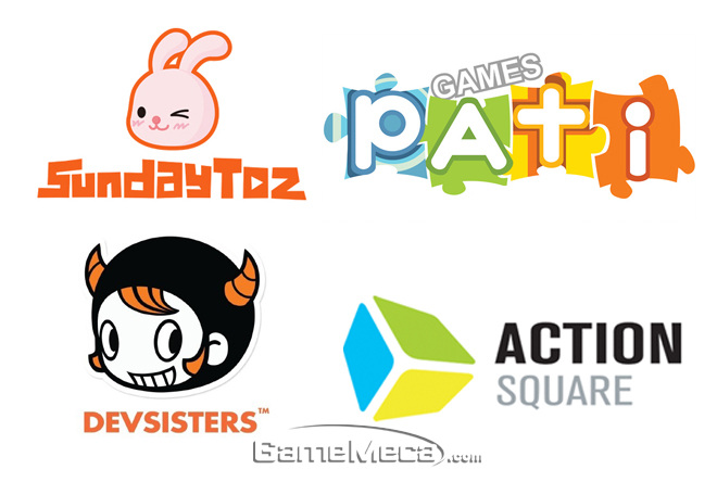 (왼쪽 상단부터 시계방향으로) 선데이토즈, 파티게임즈, 액션스퀘어, 데브시스터즈
