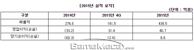 ▲ 와이디온라인 2015년 실적 자료(자료제공: 와이디온라인)