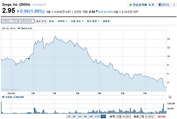 8월 1일 기점 징가 주가 상황 (자료 출처: 야후 금융)
