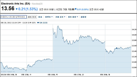 EA의 나스닥 증시 상황 (자료 출처: 야후 금융)
