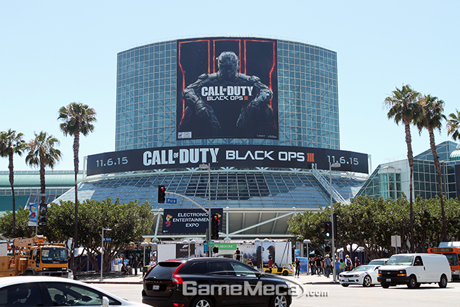 ▲ E3 2015 현장, '콜 오브 듀티: 블랙 옵스 3' 대형 현수막이 눈길을 끈다