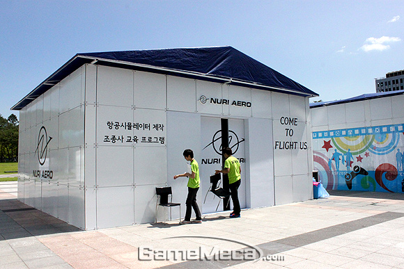 경기기능성페스티벌의 광장 정 중앙에 자리 잡은 누리항공 체험관에는 막 페스티벌이 시작된 이른 시간부터 많은 비행기 매니아들이 몰려 조정 시뮬레이션을 체험해보고 있었다. 체험관에 설치된 모의비행장치는 항공기 조종사가 실비행 전에 훈련용으로 사용하는 시뮬레이터로써 일반인들에게 직접 하늘을 나는 가상 체험의 공간을 제공할 예정이다.