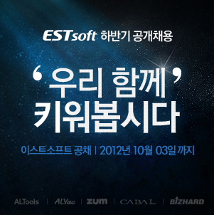 이스트소프트는 금일(10일)부터 오는 10월 3일까지 2012년 하반기 공개 채용을 실시한다고 밝혔다.