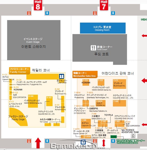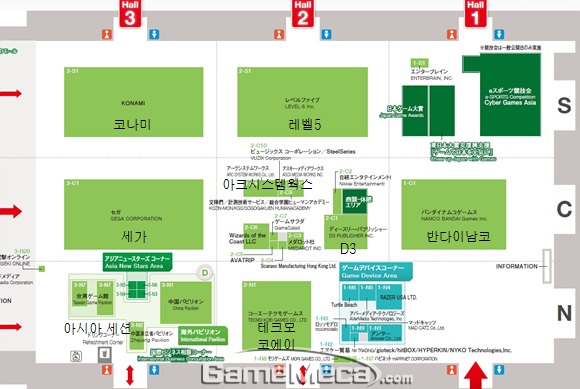 반다이남코, 코나미, 세가, 테크모코에이 등의 부스가 집결해 있는 1, 2, 3홀