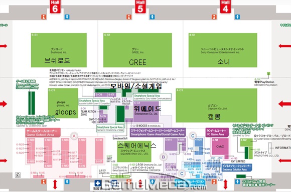 행사장 중앙인 4, 5, 6홀 가운데에는 유일하게 B2C관에 출전하는 국내 게임업체인 위메이드를 중심으로 스마트폰과 소셜 게임을 다루는 ‘스마트폰 스페셜 에어리어’ 가 넓게 자리하고 있어 꾸준히 대세로 떠오르고 있는 스마트폰 게임 분야의 위상을 짐작케 한다.