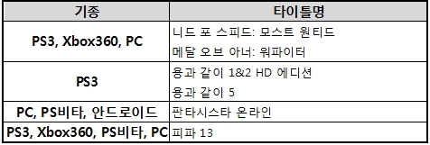 소니의 TGS2012 출전 타이틀 라인업
