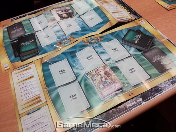 강습을 위해 펼쳐져 있는 게임플레이필드와 카드 덱