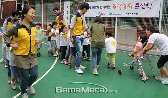 이날 넷마블 임직원들은 이화 어린이집 어린이들과 함께 인근 사회복지관 체육시설에서 추석 전통 놀이인 그네뛰기, 청실홍실, 강강술래 등을 직접 체험해보며, 추석 명절음식도 먹으며 추석의 의미와 유래를 알아보는 시간을 가졌다.