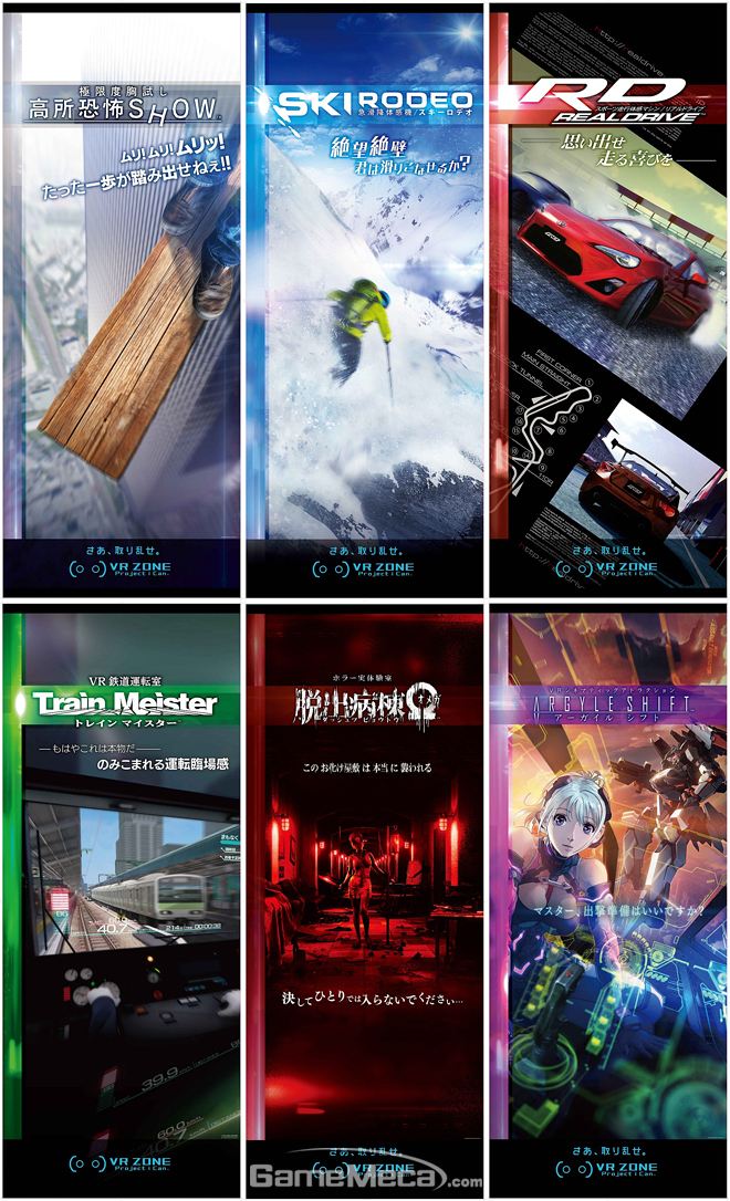 이어 ‘리얼 드라이브’에서는 실제 차량과 동일한 감각으로 도로를 주행할 수 있으며, ‘트레인 마이스터’를 통해 항상 타보기만 하던 지하철에 기관사가 되는 것도 가능하다. 보다 짜릿한 체험을 원하는 이를 위한 소름 돋는 공포 체험 ‘탈출병동 오메가’도 있다. 끝으로 ‘프로젝트 아이 캔’의 야심작 ‘아가일 시프트’에서는 묘령의 소녀와 함께 거대 로봇에 탑승해, 한 편의 애니메이션과 같은 격전을 펼치게 된다.