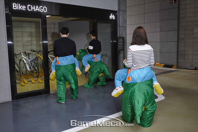 ▲ 넥슨은 야생의 땅이죠. '듀랑고' 공룡을 타고 출근합니다