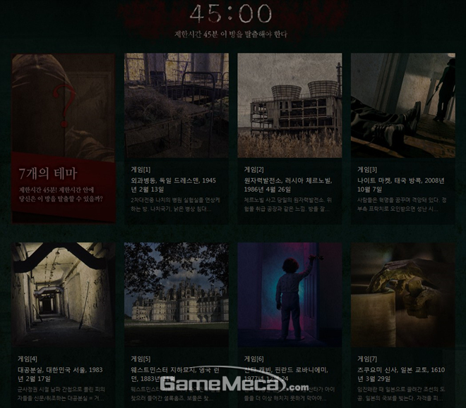 테마방은 독일 외과병동부터, 러시아의 원자력 발전소, 태국 나이트마켓, 영국 웨스트민스터 등 여러 지역과 시대를 기초로 제작됐다. 최대 5명까지 동시 참여 가능하며, 플레이어는 45분간 스토리를 연결하기 위한 단서, 암호 수집, 퍼즐, 아이템을 획득해 문제를 풀어나가게 테마방마다 난이도가 다르며, 게임 중간에 힌트를 요청할 수도 있다.
