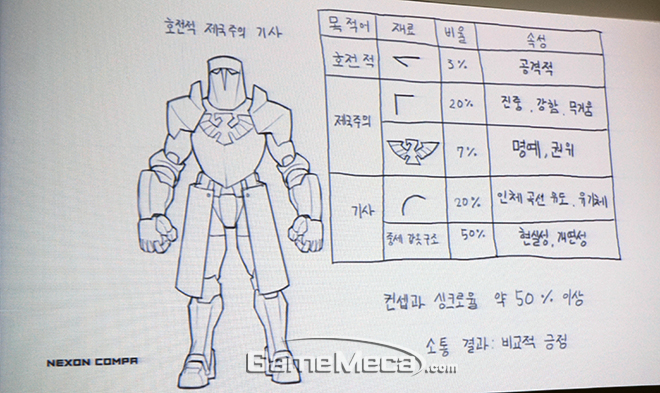 중요한 부분은 각 이미지들이 가지는 ‘느낌’을 잘 숙지하는 것이다. 김 AD는 "세모는 날카로움, 동그라미는 부드러움, 네모는 안정적이라는 의미로 종종 사용되듯이, 사람들이 관습적으로 사용하는 이미지가 많다. 호전적인 제국주의 기사도 그런 ‘상징’들을 모아서 예시로 만들어본 것이다. 이런 이미지들을 잘 활용하면 기획자가 이야기하는 ‘느낌’을 어렵지 않게 묘사할 수 있으니, 콘셉 디자인에 적극 활용하면 좋다. 적응되면 잦은 수정 없이도 시안을 잘 통과시킬 수 있을 것”이라고 설명했다.