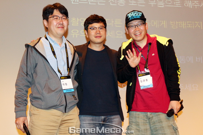 ▲ 왼쪽부터 넥슨 이원 라이터, 이홍우 실장, 김관중 IP 팀장