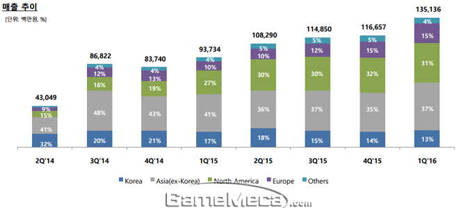 ▲ 컴투스 2016년 1분기 권역별 매출 구성 (자료제공: 컴투스)