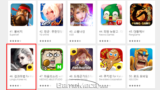 룽투코리아는 지난 8일, 구글 플레이와 애플 앱스토어에 자사의 신작 '검과마법'을 출시했다. 무료 게임 인기 순위는 구글과 애플 모두 1위지만 매출 순위는 격차가 있다. 애플 앱스토어는 9일 오후 3시 26분 기준 게임 부문 최고 매출 3위에 올랐으나 구글 플레이의 경우 게임 매출 순위 46위에 그쳤다. 국내에서 지배력이 높은 구글 플레이 매출 순위가 기대보다 못 미친다는 점이 룽투코리아의 주가 하락에도 영향을 미친 것으로 분석된다.