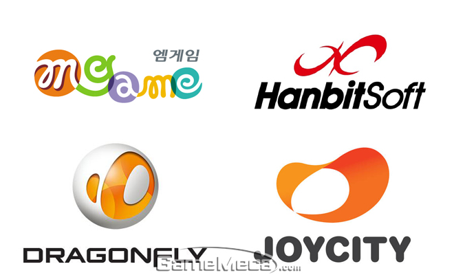 ▲ 왼쪽 위부터 시계방향으로 엠게임, 한빛소프트, 조이시티, 드래곤플라이 CI