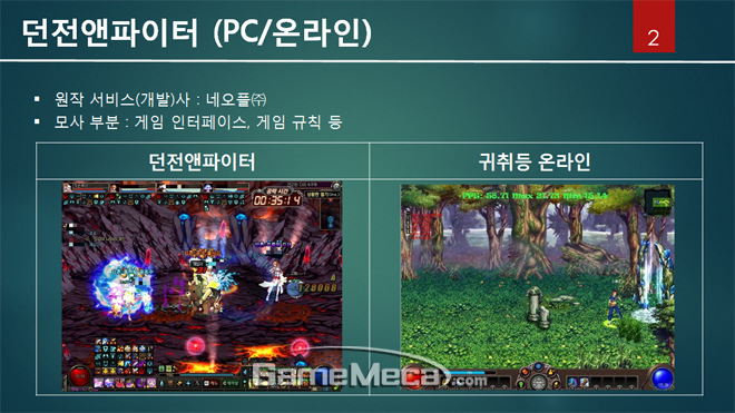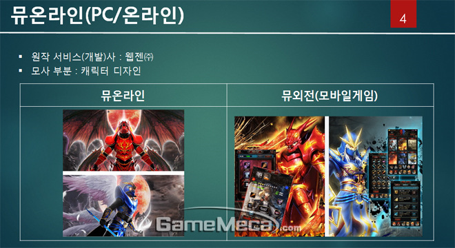 ▲ 위부터 '던전앤파이터', '뮤 온라인', '아이러브커피', '스톤에이지' 저작권 침해 사례