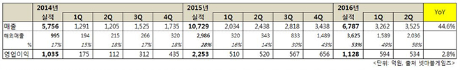 ▲ 넷마블 2016년 2분기 매출 (자료제공: 넷마블)