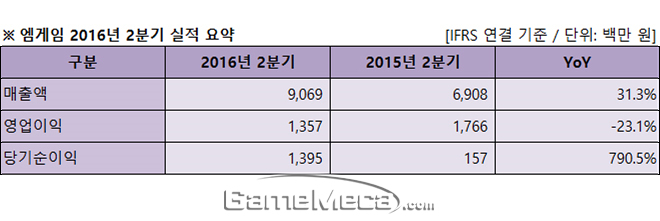 ▲ 엠게임 2016년 2분기 실적 (자료제공: 엠게임)