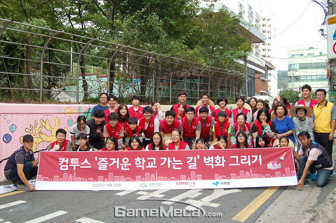 컴투스 봉사단, 시흥초등학교 등굣길에 화사한 '벽화' 꽃피웠다