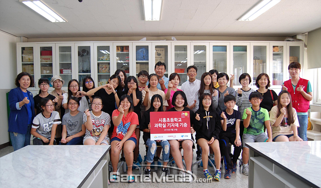 ▲ 미래 인재 양성을 위한 과학실 기자재 기증도 이루어졌다 (사진제공: 컴투스)