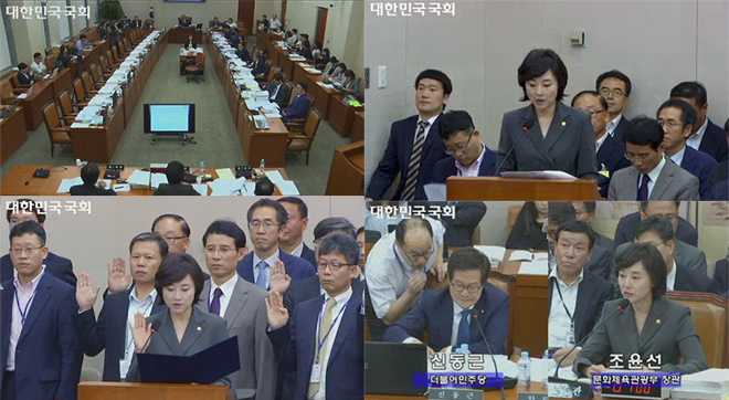 ▲ 2016년 문화체육관광부 국정감사 현장 (사진출처: 의사중계시스템 생중계 갈무리)