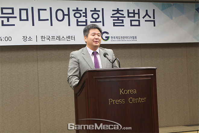 축사를 맡은 게임메카 손대현 상무는 “80년대 말, 국내 게임업계가 태동할 당시만 해도 전문지란 일본 매체를 보고 베끼는 수준에 불과했다. 그러던 것이 국산 게임들과 함께 성장하여 이렇게 협회 출범에까지 이르렀으니 감회가 새롭다. 이전에도 비슷한 단체가 있었지만 서로 협력보다는 경쟁에 급급하여 몇 년 못 가 와해되곤 했다. 협회가 끈끈히 결속하여 이어지길 바라며 이를 위해 최선을 다해 협조하겠다”고 전했다.