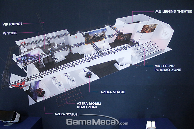 ▲ 웹젠 부스 배치도, 메인 출품작은 '뮤 레전드'와 '아제라: 아이언하트'