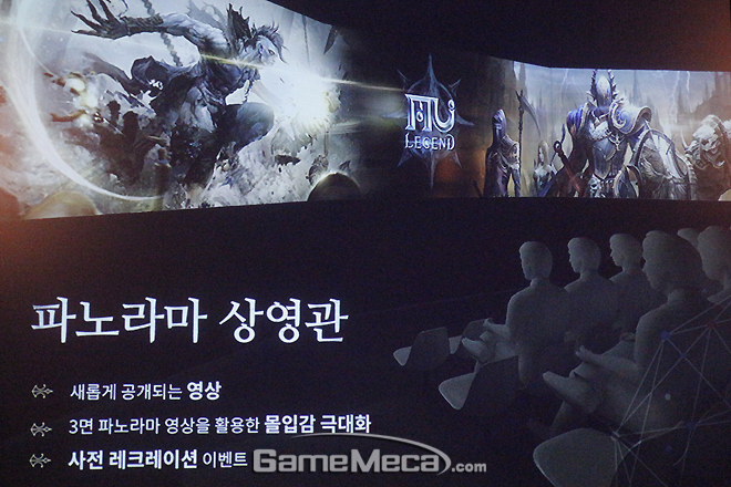 ▲ 3면 파노라마 스크린이 설치된 상영관에서 '뮤 레전드' 미공개 영상을 확인하자