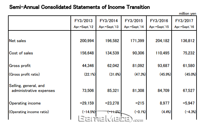 '포켓몬 GO' 열풍에도 불구하고 닌텐도의 반기 매출이 33%가 감소했다. Wii U 판매가 줄어든 것에 엔고현상으로 인한 해외 사업 수익 감소가 겹쳤다. 여기에 영업이익 역시 2년 만에 적자로 돌아섰다.