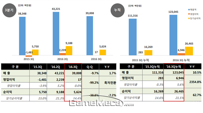 ▲ 게임빌 2016년 3분기 실적 (자료제공: 게임빌)