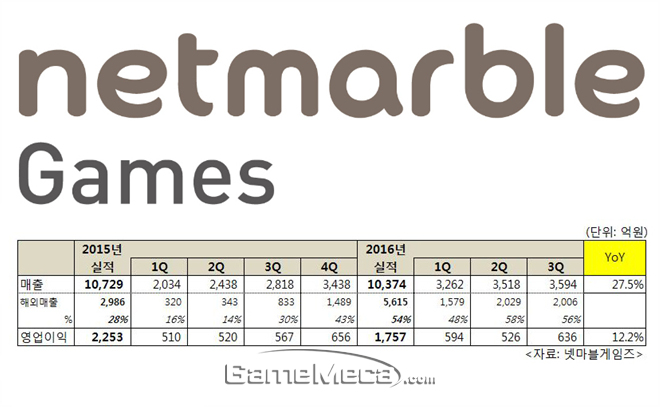 ▲ 넷마블 2016년 3분기 실적 (자료제공: 넷마블)