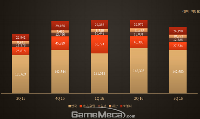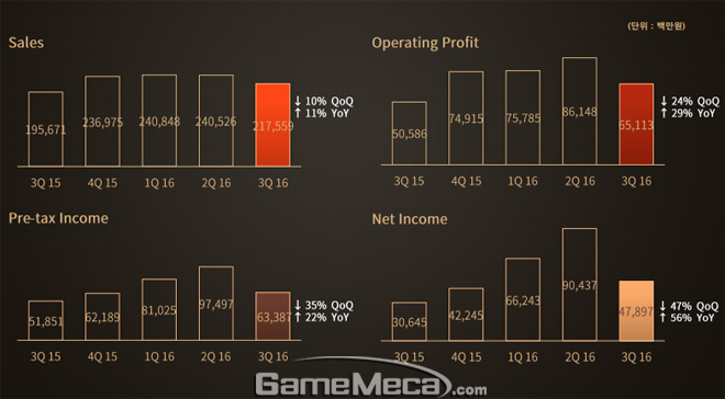 ▲ 엔씨소프트 2016년 3분기 실적 (자료제공: 엔씨소프트)