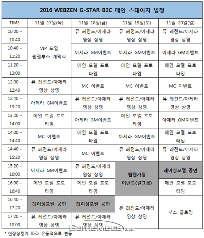 ▲ 웹젠 '지스타 2016' 부스 일정표 (사진제공: 웹젠)